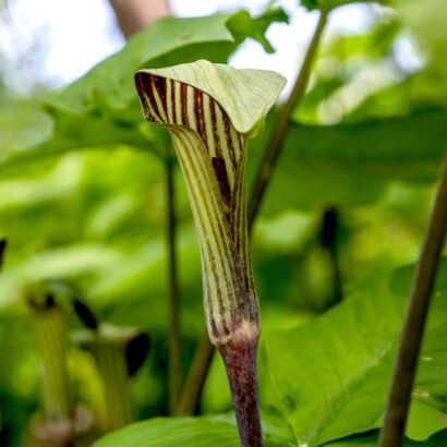 Botanical Name Arisaema triphyllum Common Name Jack-in-the-pulpit, bog onion, lord-and-lady, wake robin Plant Type Herbaceous perennial Mature Size 1-2 ft. tall, with a similar spread Sun Exposure Partial to full shade Soil Type Moist, humusy Soil pH Acidic…