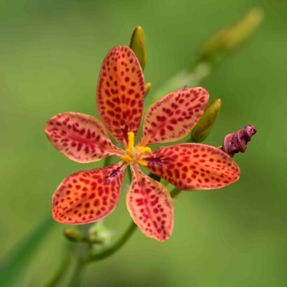 Common Name Blackberry lily, leopard lily, leopard flower Botanical Name Iris domestica Family Iridaceae Plant Type Herbaceous, perennial Mature Size 2–3 ft. tall, 9–24 in. wide Sun Exposure Full Soil Type Well-drained Soil pH Acidic, neutral, alkaline Bloom…