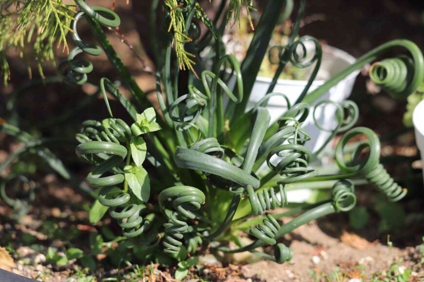 The plant’s eye-catching curly foliage will straighten and turn brown at the tips as the flower stalk grows. If you would rather keep the curly foliage, you simply need to snip the flower stalk when it emerges.
