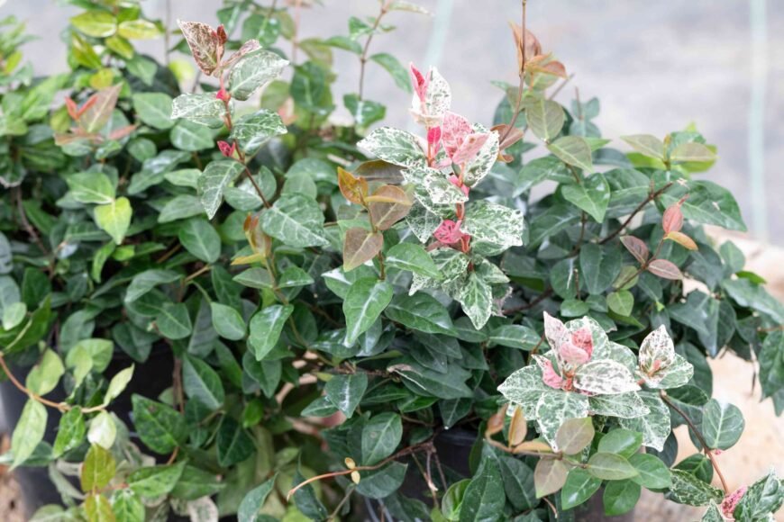 - ‘Variegatum’: This plant has gray-green variegated foliage and twining vines. The fragrant ivory-colored flowers bloom in the summer for an extended period.