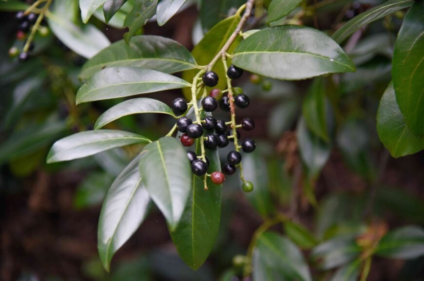The leaves, stems, seeds, and berries of this laurel are toxic when ingested by both humans and pets.