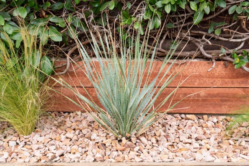 It does well in a xeriscape garden or any dry spot with full sun where it is otherwise challenging to grow plants. Keep in mind, however, that the spines (called “teeth”) along the leaves are sharp and cling to clothing and skin so keep it several feet away from walkways, driveways, and patios. Make sure to give the plant ample room to reach its full size. If it is planted too close to heavy traffic areas, you might end up having to prune it on one side because the leaves pose a hazard, and that makes the plant very unsightly.