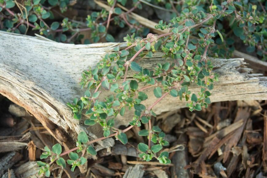 Spurge weed is a common invasive weed native to eastern North America. It grows throughout most of the United States, apart from the Southeast, due to humidity sensitivity and lack of winter chill hours needed for germination. It spreads via tiny seeds, has a deep tap root, and grows quickly during summer.
