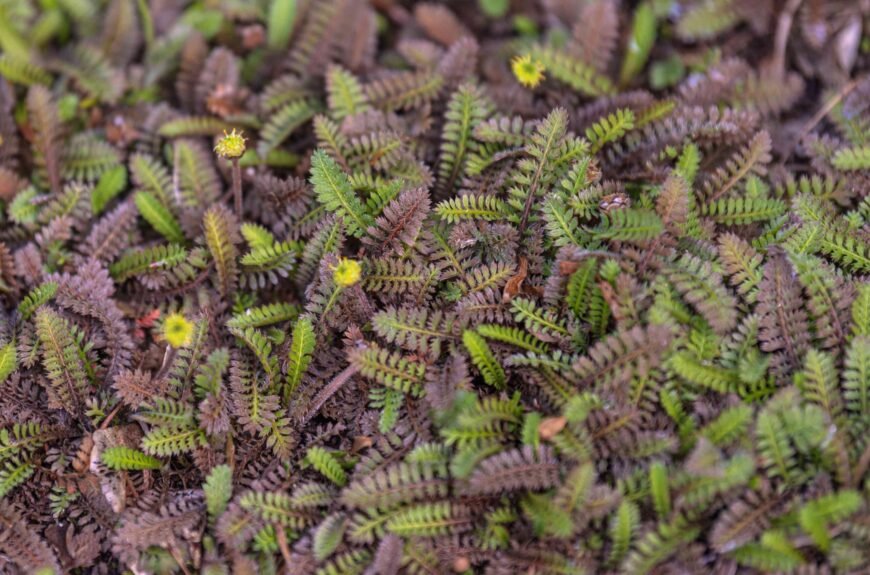 - Leptinella minor: Also named ‘Alpine brass buttons’, these tiny ferns have deep green and bronze tinges and only grow about an inch tall into a deep carpet that also subs as a lawn.